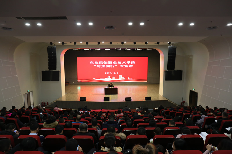 为深入学习宣传宪法,弘扬宪法精神,2019年12月5日,学院组织克拉玛依校区全体教职工在J2报告厅进行“与法同行”大宣讲活动,学院党委书记、副院长王和作专题报告。