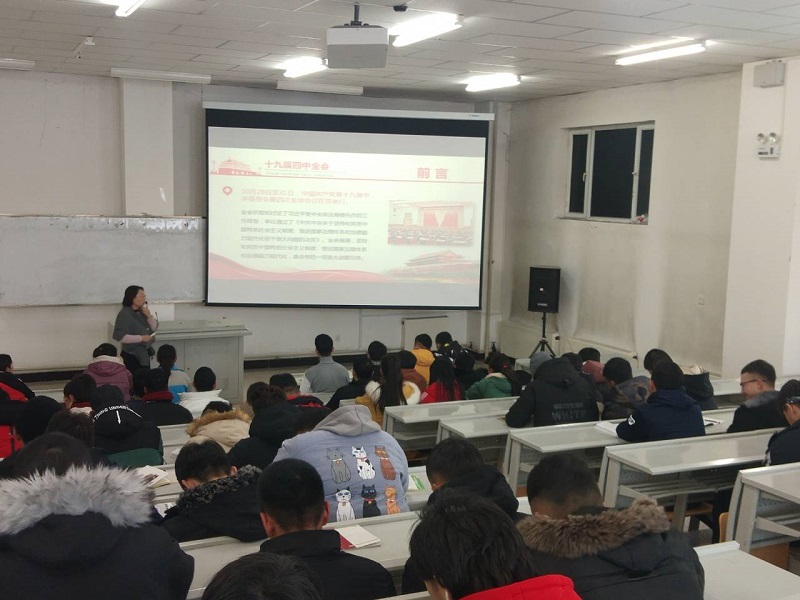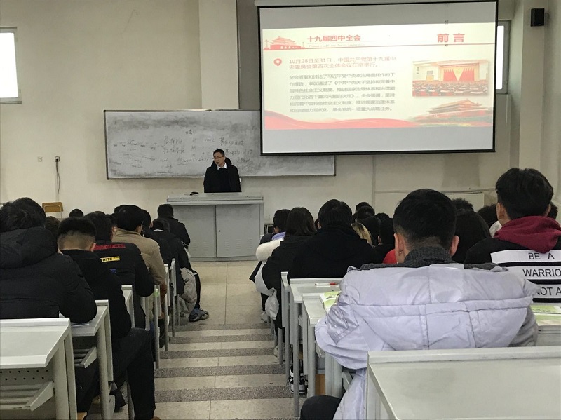 全体思政课教师在充分学习领悟全会精神的前提下,从11月25日到12月6日,利用思政课堂在全校范围内开展了十九届四中全会精神的宣讲活动,覆盖了学院预科、2018级和2019级全部班级,宣讲人数近5000人次。